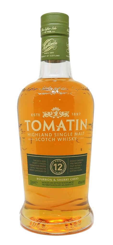 La Destilería Tomatin es una de las destilerías más grandes de Escocia , ubicada en las Tierras Altas cerca de Inverness. Tomatin se traduce como "colina de enebro": como la madera de enebro no emite humo cuando se quema, ha sido utilizada durante mucho tiempo por destiladores ilícitos que tenían que mantener su práctica en secreto, especialmente durante la Prohibición. La ubicación remota de Tomatin a más de 300 metros sobre el nivel del mar en las montañas de Monadhliath se debe seguramente al hecho de que el sitio había albergado anteriormente un alambique donde los pastores de ganado se detenían para llenar sus cantimploras. Cuando se fundó la destilería oficial en 1897, en el apogeo del auge del whisky, la ubicación, aunque aislada, era conveniente ya que estaba al lado de una línea ferroviaria recién inaugurada, que conectaba la destilería con el mercado (y centro de suministro) de Inverness. , y en un arroyo de montaña que suministra agua fresca de montaña. Sin embargo, como muchas destilerías de whisky, el negocio sufrió la depresión de 1900 y quebró en 1906 antes de reabrir en 1909 con nuevos dueños. El colapso de la demanda de whisky durante la crisis económica de la década de 1980 provocó la liquidación de la destilería y el desmantelamiento de muchos alambiques. Dos años después fue adquirido por el antiguo cliente Takaro Shuzo Ltd y la distribuidora Okura , ambos japoneses. Desde entonces, Tomatin se ha desarrollado mucho más como marca, con énfasis en la calidad más que en la cantidad, y una gama más amplia de Single Malts.