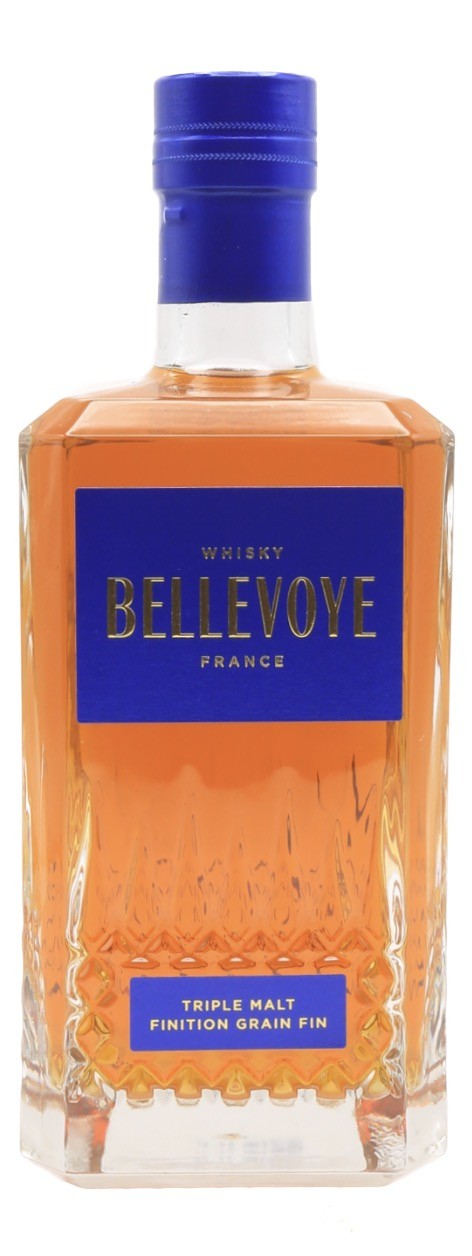Bellevoye Bleu est le pilier fondateur du Whisky Français Bellevoye, maison créée par Jean et Alexandre Beaussant, dont la vision repose sur l’union de trois single malts 100 % français. Sélectionnés dans trois distilleries emblématiques de l’Hexagone, ces malts sont assemblés puis affinés dans le chai charentais de la maison, où le climat océanique et l’élevage en fûts de chêne français signent un style à la fois précis, souple et harmonieux.