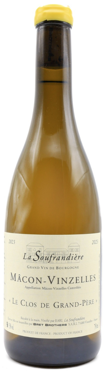 The Domaine de la Soufrandière is located in Vinzelles, in the heart of the Mâconnais, in the south of Burgundy, a region renowned for the quality of its white wines made from Chardonnay. The estate has belonged to the Bret family for several generations and is now run by brothers Jean-Philippe and Jean-Guillaume Bret, who have profoundly renewed the estate's approach since the 2000s. The vineyard is managed organically and biodynamically, with particular attention paid to soil life and the precise expression of the limestone terroirs of the Mâconnais. Alongside the family estate, the Bret brothers created the Bret Brothers house, a demanding trading project that selects grapes from rigorously chosen plots. The Le Clos de Grand Père cuvée comes from a small historic plot located in Vinzelles, whose clay-limestone soils contribute to the mineral signature of the wines. This cuvée illustrates the Bret brothers' desire to produce precise and readable wines, highlighting the purity of Burgundian Chardonnay. The 2023 vintage fits into this approach by revealing a balanced and bright expression of the terroir.