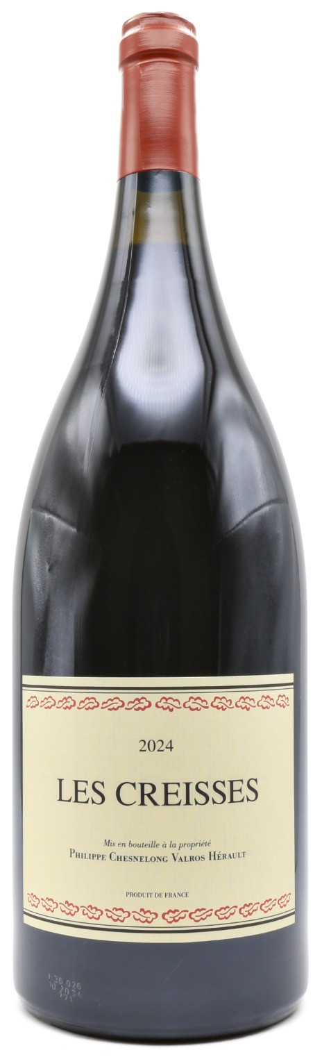 La cuvée Les Creisses Rouge 2024 – Magnum est un assemblage emblématique de Syrah, Cabernet Sauvignon, Grenache, Marselan, Alicante, Mourvèdre et Carignan. Les raisins sont éraflés puis soumis à une longue macération d’environ 20 jours, permettant d’extraire couleur, structure et richesse aromatique. L’élevage, conduit entre 12 et 18 mois, affine la matière et renforce l’harmonie de l’ensemble. Le millésime 2024 exprime une générosité solaire typiquement languedocienne, soutenue par une ossature structurée rappelant certains grands vins bordelais. Le format Magnum favorise une évolution plus lente et plus harmonieuse, accentuant la fraîcheur et le potentiel de garde.